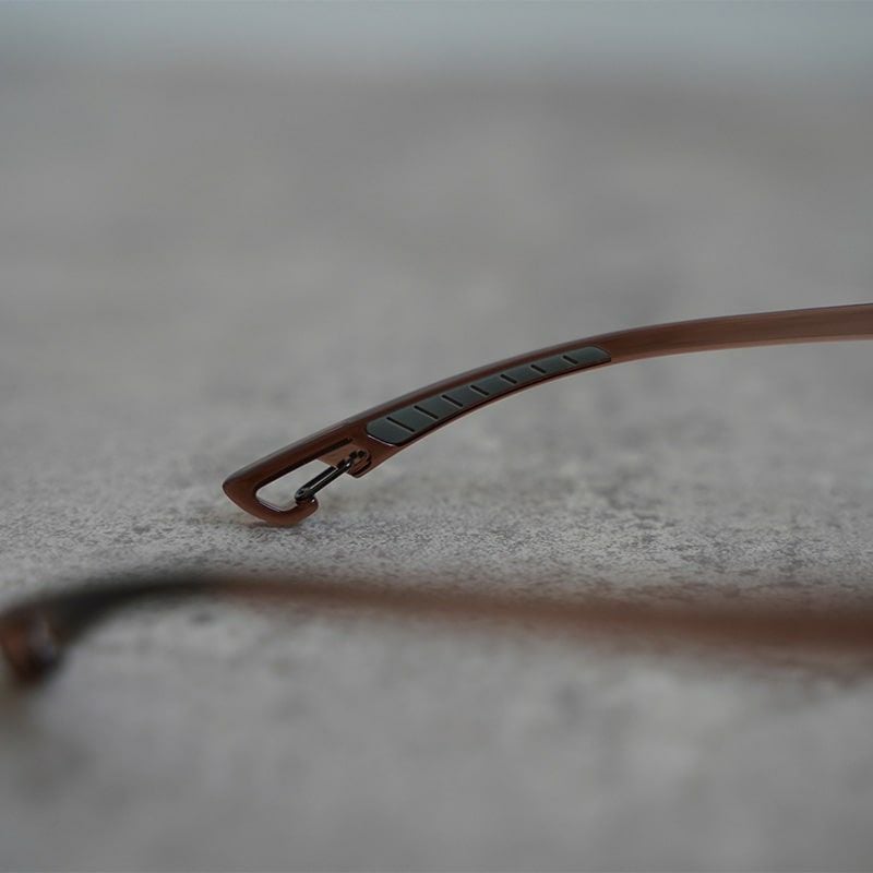 ・テンプル先はカラビナの形状になっており、付属のグラスコードの取り付けが可能です。