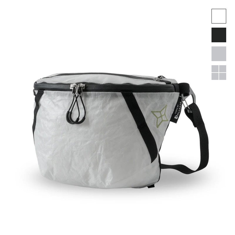 付属のベルトでショルダーバッグとして単体使用も可能。テント場や山小屋でも貴重品を身につけておけます。