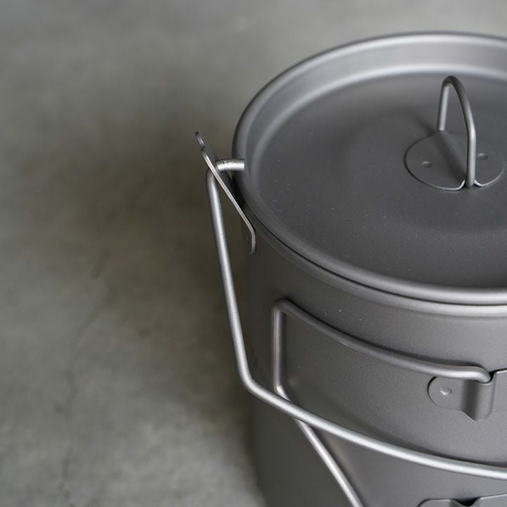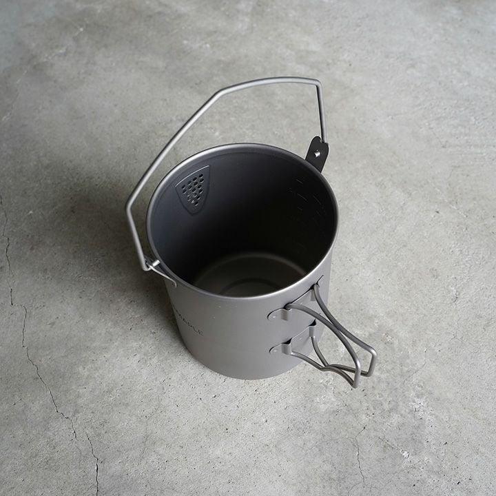 注ぎ口のあるチタンポットでしっかり調理できる900mlサイズ。