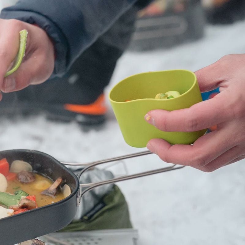 トレイルカップは、食事時のお椀やコップとして使うことができます。小皿として取り分けたり、 パーティーのメンバーと食事をシェアしたりする時に便利です。調理時の道具置き場としても活用できます。