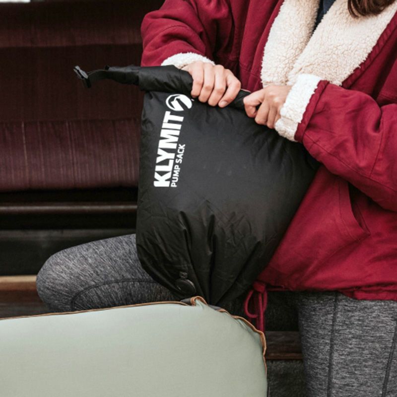 電池不要のKLYMITスリーピングパッド用ロールトップポンプ。呼気よりも簡単かつ効率的にマットを膨らませることができます。