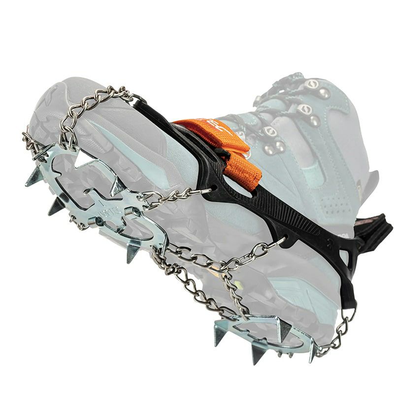 - 伸縮性ベルクロバンドが付属し、シューズの甲に設置することでクランポンのズレを防ぎます。 また、かかとに設置できるシューズリフターを使うと着脱がしやすくなります