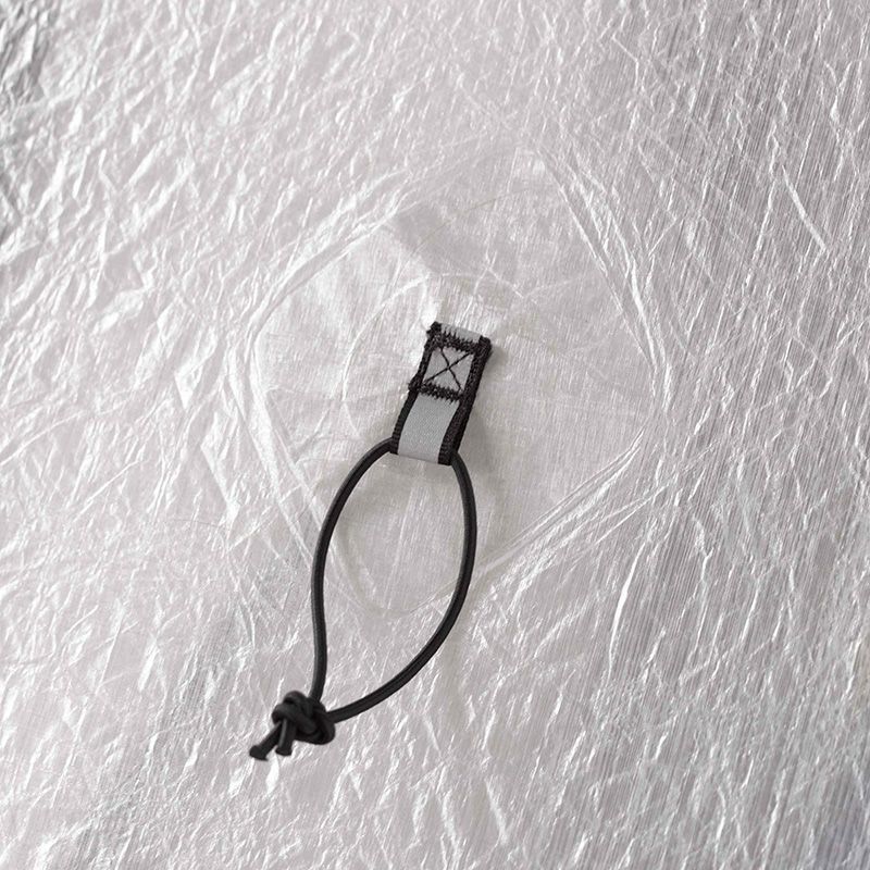 交換が可能な前室ドアのタイアウトポイント。DCF11で補強されたライナーロック付きの6つのタイアウトがあります。さらに2つの後部ミッドパネルタイアウト、2つのサイドミッドパネルタイアウト、1つのアペックスタイアウトによってテントの構造を強化し、風などによる影響を軽減します。