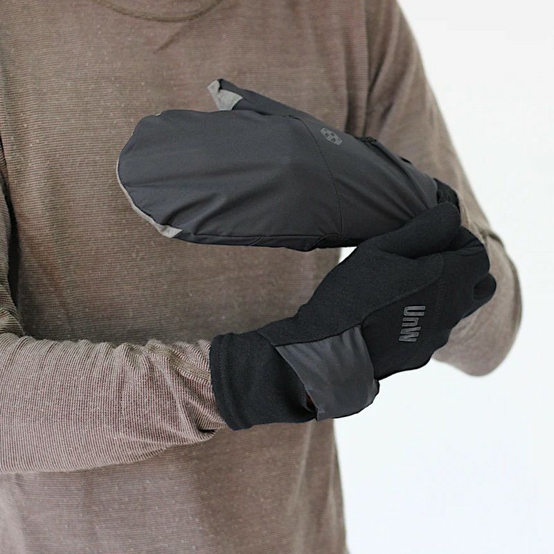 天候や体温変化に応じて素早く装着・収納ができ、雨風や冷気から手を守ります。