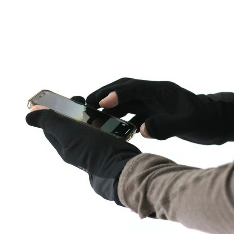 親指と人差し指の指抜き構造により、スマートフォン操作やカメラ操作もスムーズ。