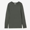 襟ぐりはメリノウールのリブ仕様で、インナーとして重ねやすい厚みと縫製を採用。メリノウールの優れた機能性を生かしながら、普段のコーディネートに使いやすい雰囲気に仕上げました。