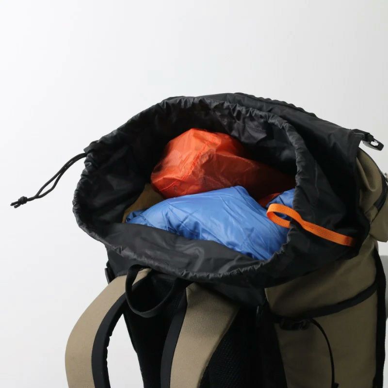 身体側に大きく開く、ユニークなメイン開口部。ザックを下ろして素早くアクセスできます。