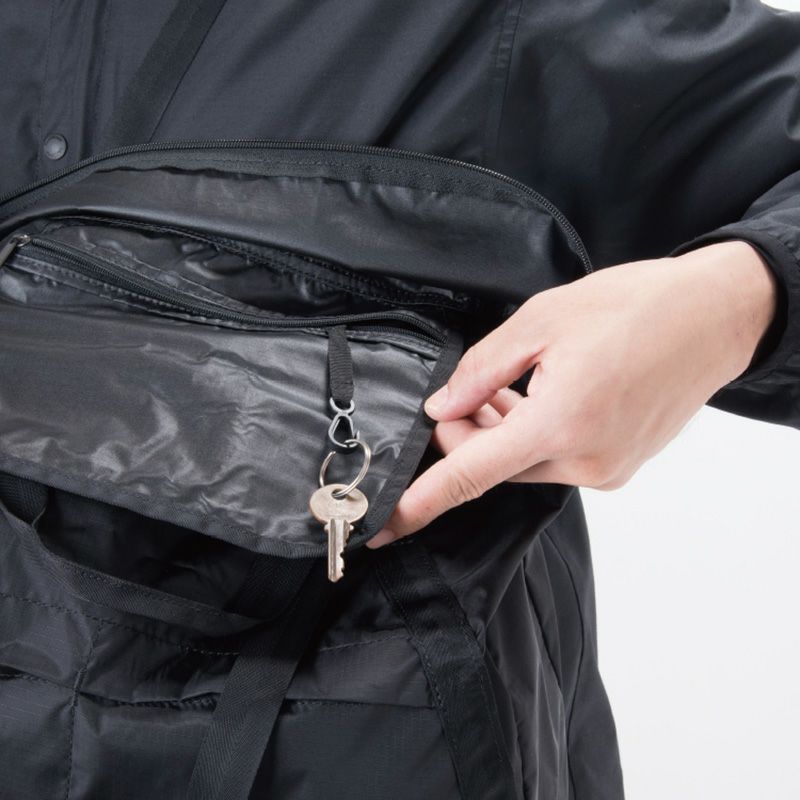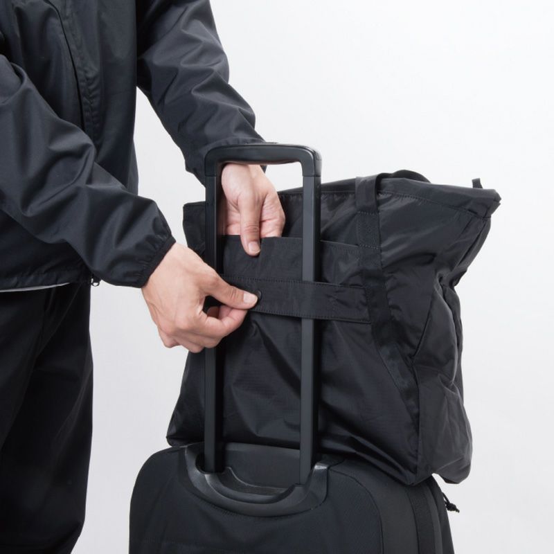 背面はキャリーケースのハンドルに通すことが可能。旅行のサブバッグとしてはもちろん、普段使いやアウトドアアクティビティにも最適な容量。