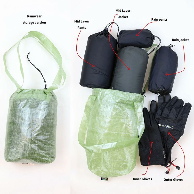 ・山で濡らしたくない物を入れてバックパックに収納。