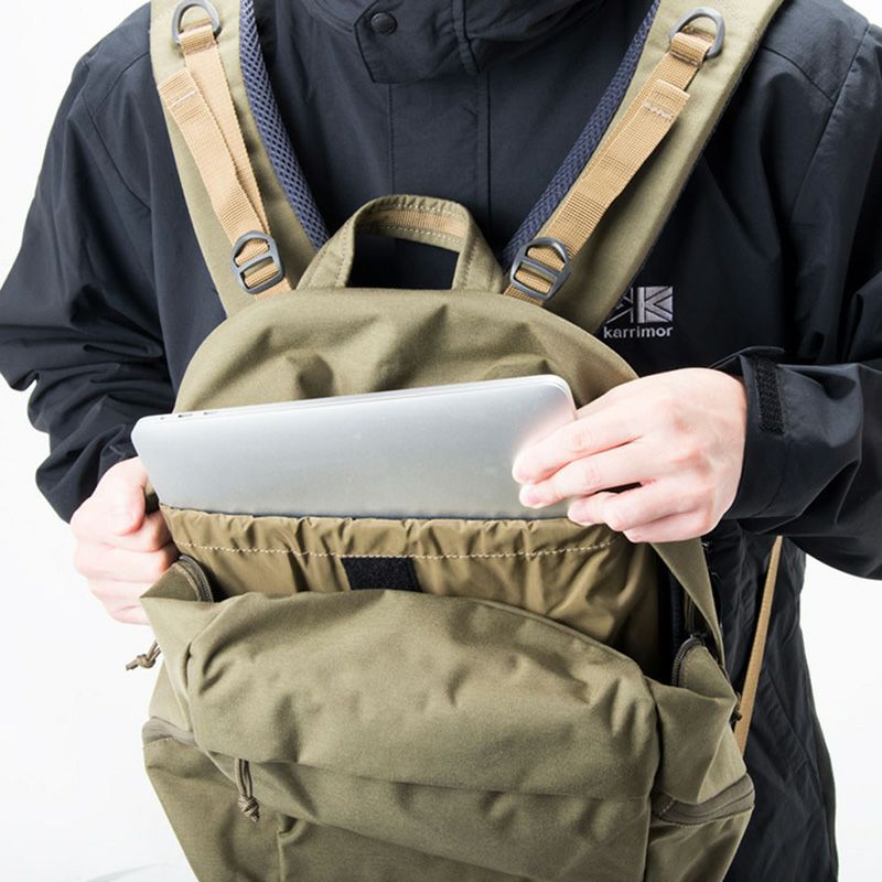 強度に優れたCORDURAファブリックを使用した、アウトドアテイスト溢れるトップローディングタイプ。