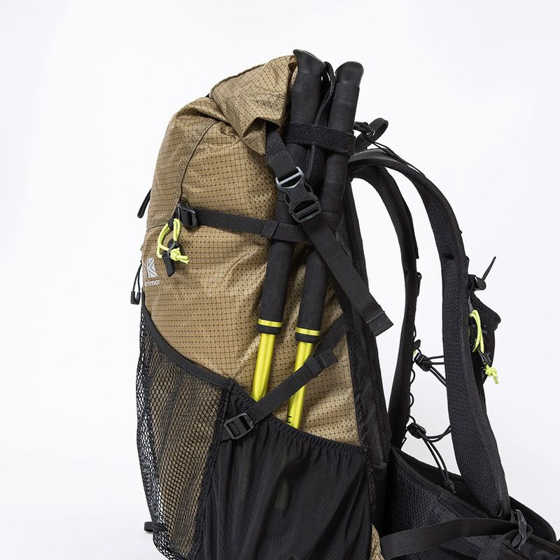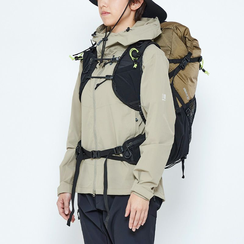 優れた強度を持つX-GRID R/S生地を使用し、容量調整ができるロールトップタイプ。 ユーティリティショルダーハーネスなど豊富な機能を装備し「行動しながらの操作性の快適さ」「荷物の出し入れ・撤収のしやすさ」を目指したリュック。デイハイクから岩場や難路がある登山で機動力がある山行スタイルを実現。