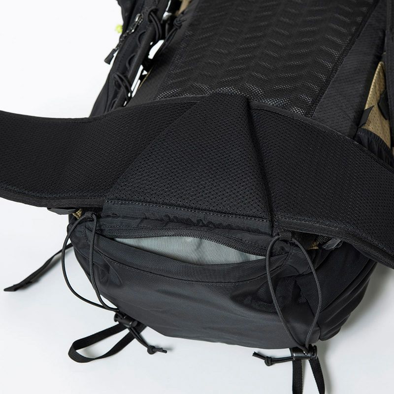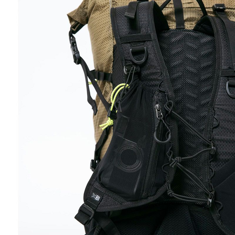 ストレッチメッシュを使用したポケットを両サイドに配置。 小物の携行はもちろん、サイドコンプレッションを利用してポールやパックロッドの収納に役立ちます。