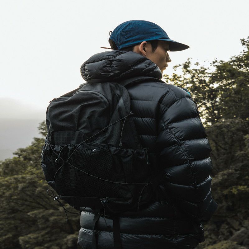 フロントのメッシュポケットも使いやすく、日常から山までシームレスに持ち歩けます。