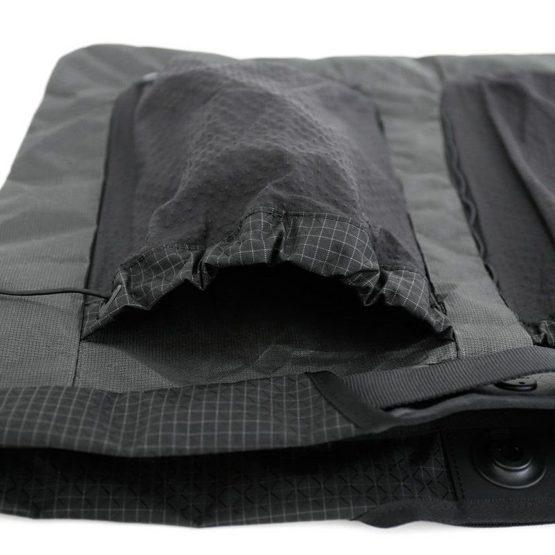 内部にはPCの収納にも対応する大型メッシュポケットを配置し、フロントには2つのストレッチポケットを装備。 アクセス性と収納力を両立し、日常使いからアウトドアシーンまで快適に対応します。