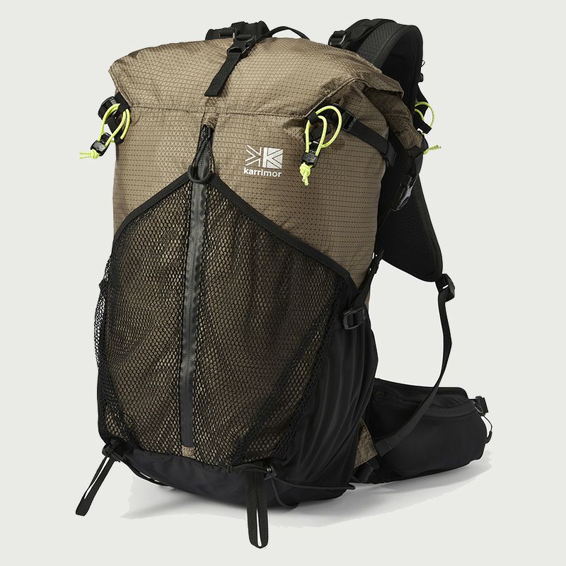 優れた強度を持つX-GRID R/S生地を使用し、容量調整ができるロールトップタイプ。 ユーティリティショルダーハーネスなど豊富な機能を装備し「行動しながらの操作性の快適さ」「荷物の出し入れ・撤収のしやすさ」を目指したリュック。デイハイクから岩場や難路がある登山で機動力がある山行スタイルを実現。