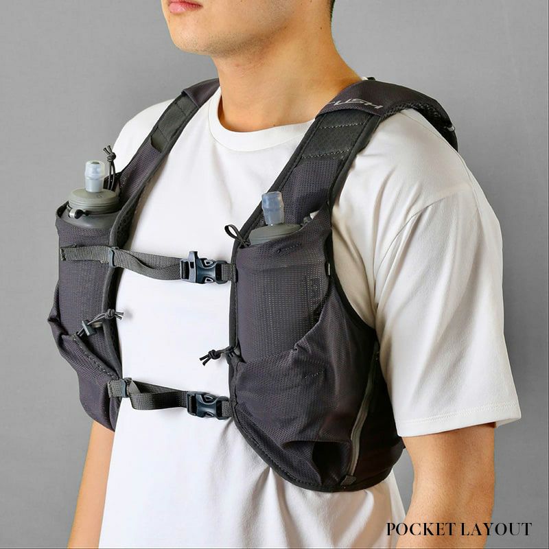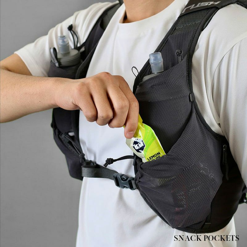 「RUSH UT」シリーズをベースに、基本設計は同じながら細部をブラッシュアップ。100キロ以上のロングレースでの使用はもちろんのこと、装備が多い時のトレーニングに最適です。