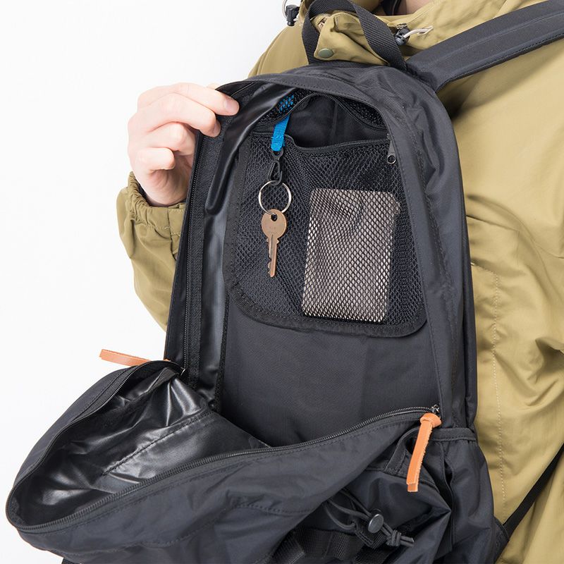 機能性を高めるだけでなく、アウトドアテイスト溢れるデザインのアクセントにもなる、カラビナなどをかけることのできるデイジーチェーンをフロント部分に装備。