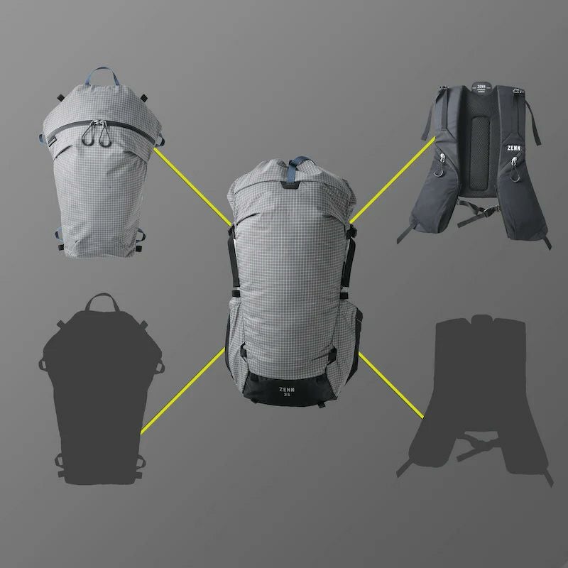 ハーネスとフロントポケットはZENNシリーズ共通のモジュール設計。用途に応じた機能を選ぶことができ、さまざまなシーンで活躍します。各モジュールは今後リリース予定です。