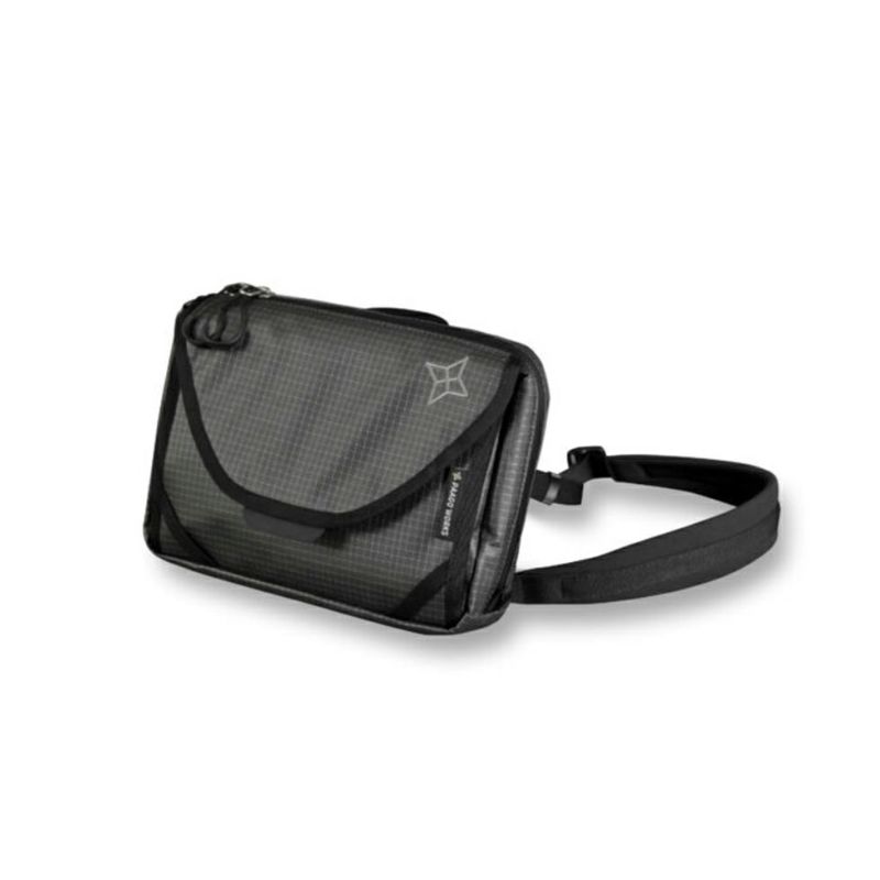 独自設計のアルミフックは、グローブをしていても扱いやすい様、ゲートの開閉のしやすさを考慮しています。Gフックを、ザックのリングやストラップに掛けることでチェストバッグとして使えます。
