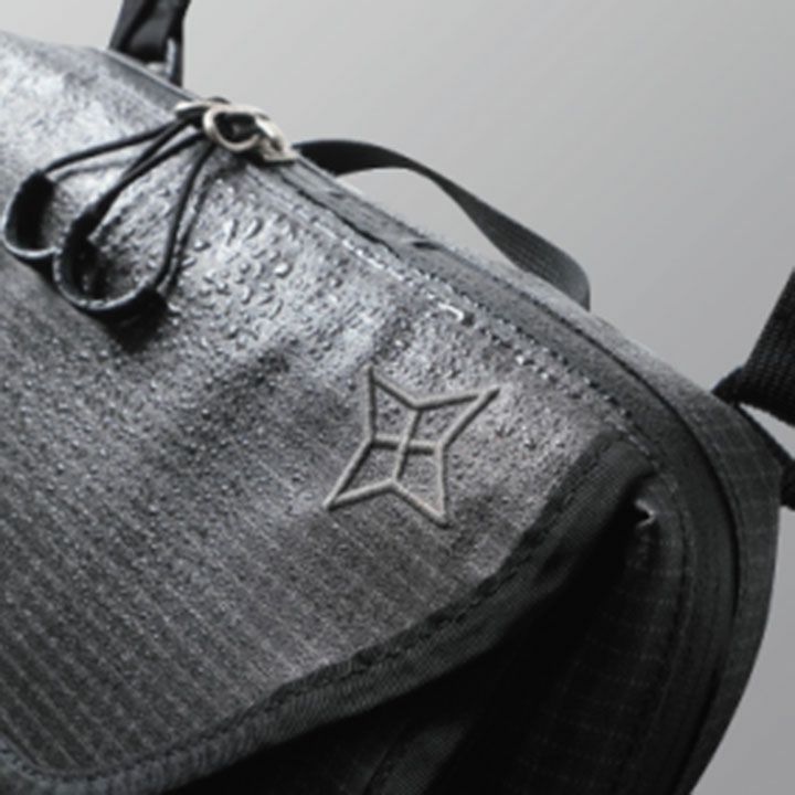 高強度ナイロン糸を格子状にした強靭なファブリックに、耐摩耗性と防水性に優れたカーボネイトコーティングを施しました。