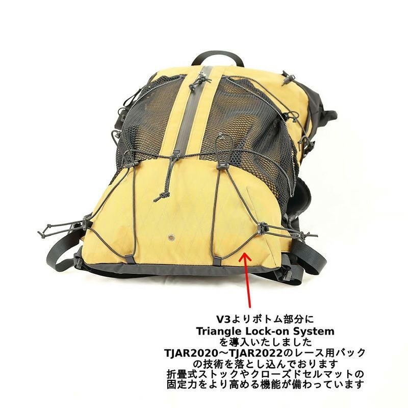 更にはV3より、TJAR2020〜TJAR2022のレース用バックパックに採用していたTriangle Lock-on Systemをボトムに流用。