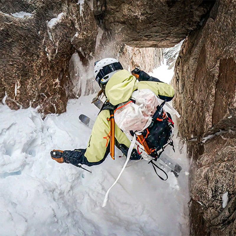 登山、スキーなどの厳しい地形において、安全な移動を可能にしたザック。
