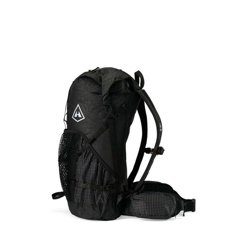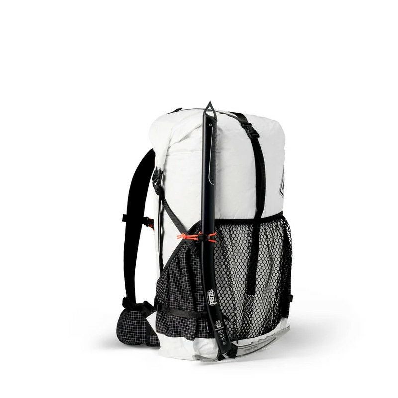 フロントポケットは地図やレインウェアを素早く取り出せる実用的な設計で、両サイドポケットはボトルやスタッフサックの収納に最適です。