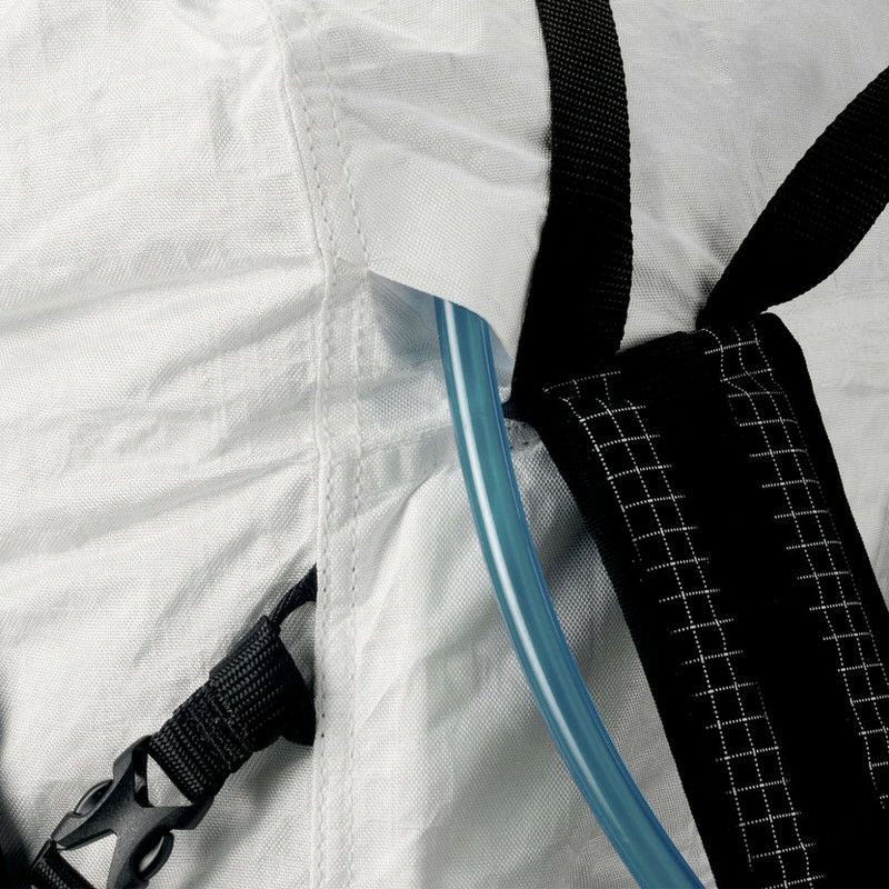 内部にはハイドレーションシステム用の通し穴を備え、行動中もスムーズに水分補給ができる設計。