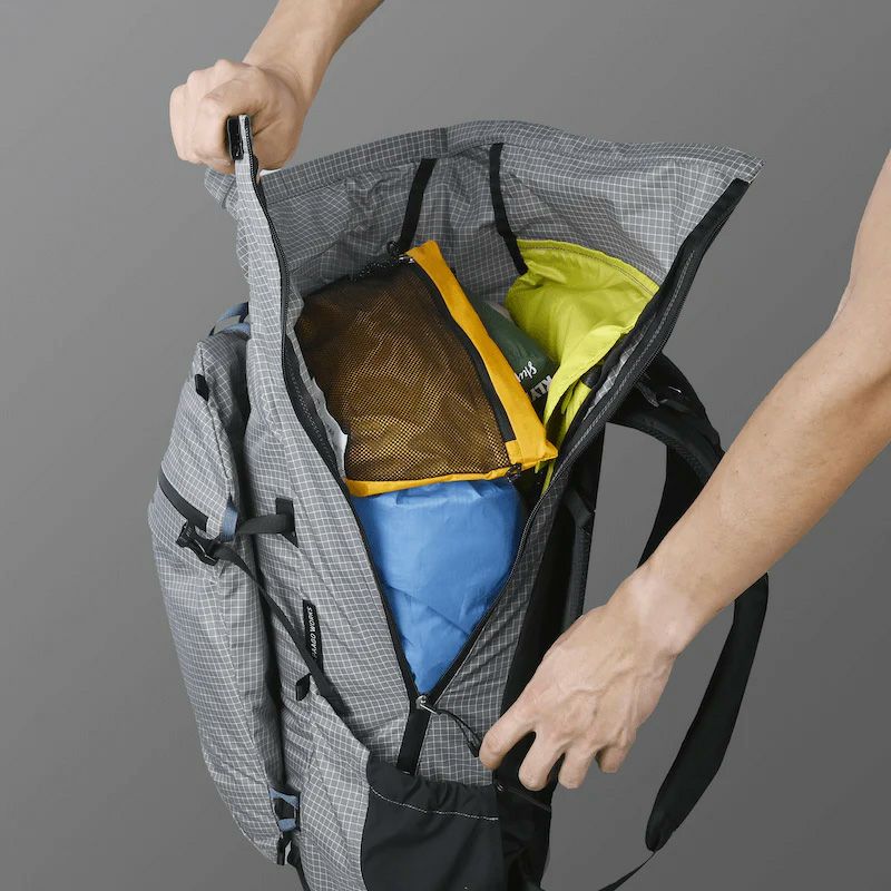 高重心設計により、とても広いメインの開口部が特徴です。サイドジッパーと相まってパッキングのストレスを軽減し、ロールトップ式のウィークポイントである開口部の狭さを解決しました。