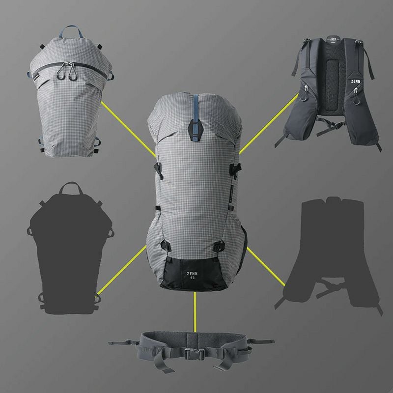 ハーネスとフロントポケットはZENNシリーズ共通のモジュール設計。用途に応じた機能を選ぶことができ、さまざまなシーンで活躍します。各モジュールは今後リリース予定です。