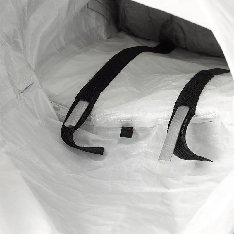 1/8 インチクローズドセル硬質フォーム、1/4 インチクローズドセルフォーム、スペーサーメッシュを備えた Dyneema® 二重密度ヒップベルトを備えたハードライン。