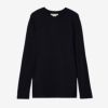襟ぐりはメリノウールのリブ仕様で、インナーとして重ねやすい厚みと縫製を採用。メリノウールの優れた機能性を生かしながら、普段のコーディネートに使いやすい雰囲気に仕上げました。