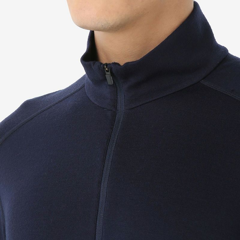 icebreakerが誇る、ウール原毛の上質感やハイレベルな紡績加工技術による“素材の心地よさ”を、肌で感じられるメリノウール100%です。260g/m2の厚手で高い保温力があり、寒さが厳しい冬でも暖か。フィット感のあるスリムシルエットで暖かさをキープしやすく、フロントのジップ開閉により、衣服内環境を快適にコントロールできます。運動追従性が高いパターン設計で、激しく動いたときの裾のずり上がりを抑える仕様。メリノウールという優れた天然素材がもたらす気持ちよさを味わえる1着です。