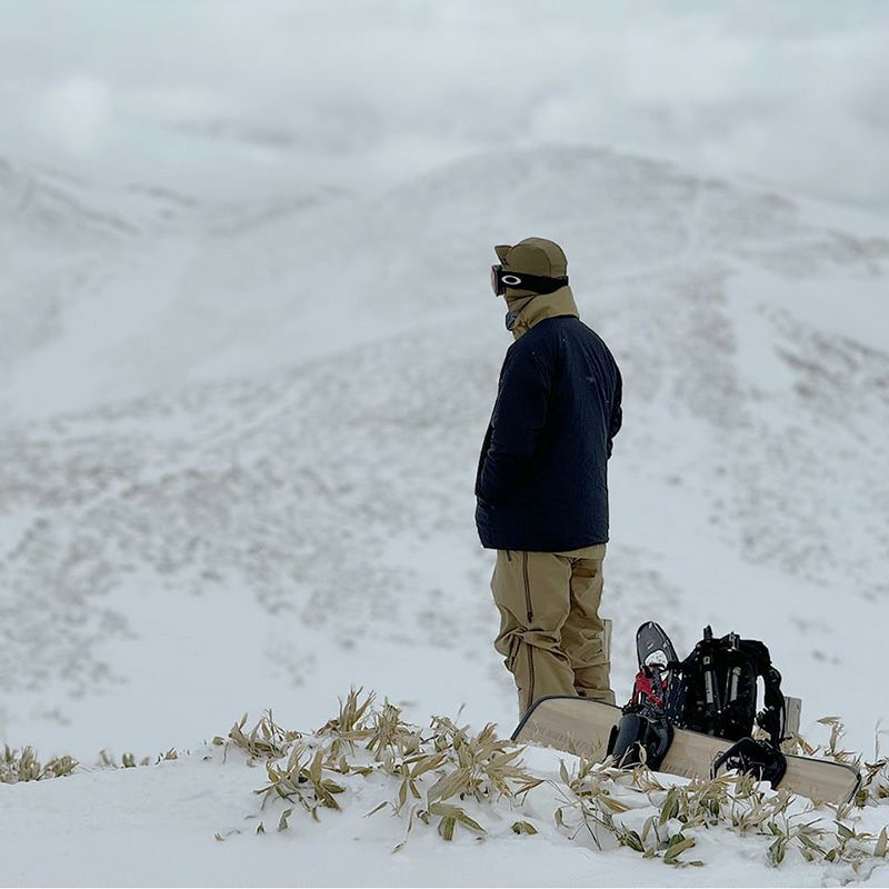 また、シェルの上から着ることが前提の為、水滴や雪などで濡れることのあることを考慮し、裏地にも表地と同じDWR加工されたナイロン生地を使用しました。