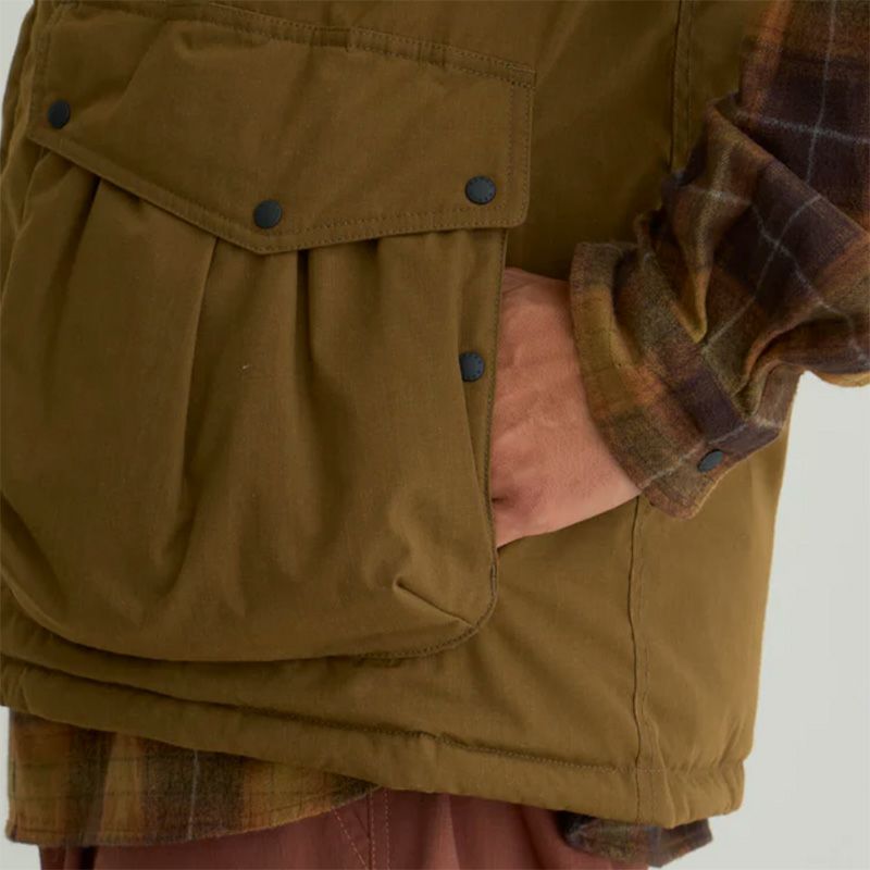HINOC DOWNシリーズから初めて登場するダウンベストタイプは、既存のヒノックダウンジャケットと共にスタイリングの幅を広げ、気候に応じて柔軟に対応できる1着です。このダウンベストは秋から冬にかけて、薄手から厚手のインナーと合わせることで、暖かさを保ちつつ日常のカジュアルなコーディネートを楽しめます。