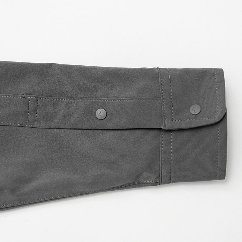 50Dナイロンのストレッチ生地をしようしているため、タッチが柔らかく軽量です。生地自体の通気性も良く、表面にはDWRコーティングが施されているため、防水性も持ち合わせています。