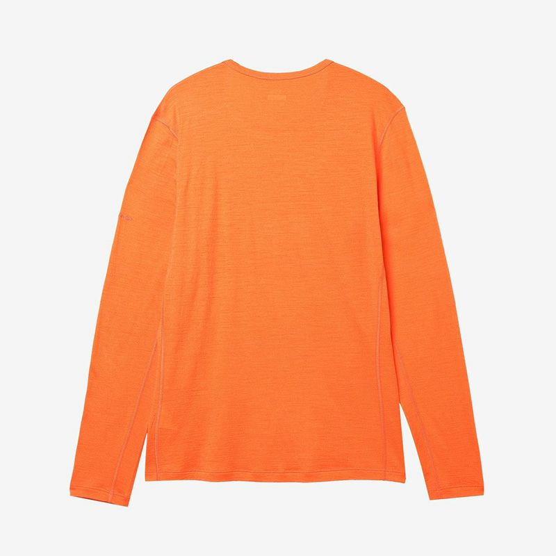 シンプルなクルーネックタイプで、同系色刺繍ロゴのみのすっきりしたデザインに仕上げています。素材はメリノウール100%で、肌に直接触れてもチクチクしにくい優しい肌触りが特徴。天然素材の心地よさと機能性を併せ持つ1着は、本格的なアウトドアシーンから日常の保温着まで幅広く活躍します。
