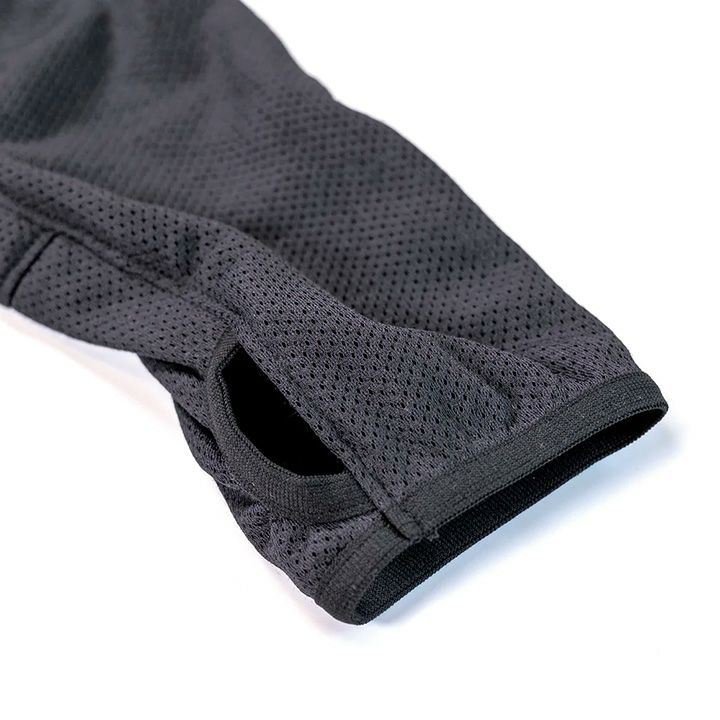 - ハーネスと干渉しないみぞ落ちまでの長いハーフジップ