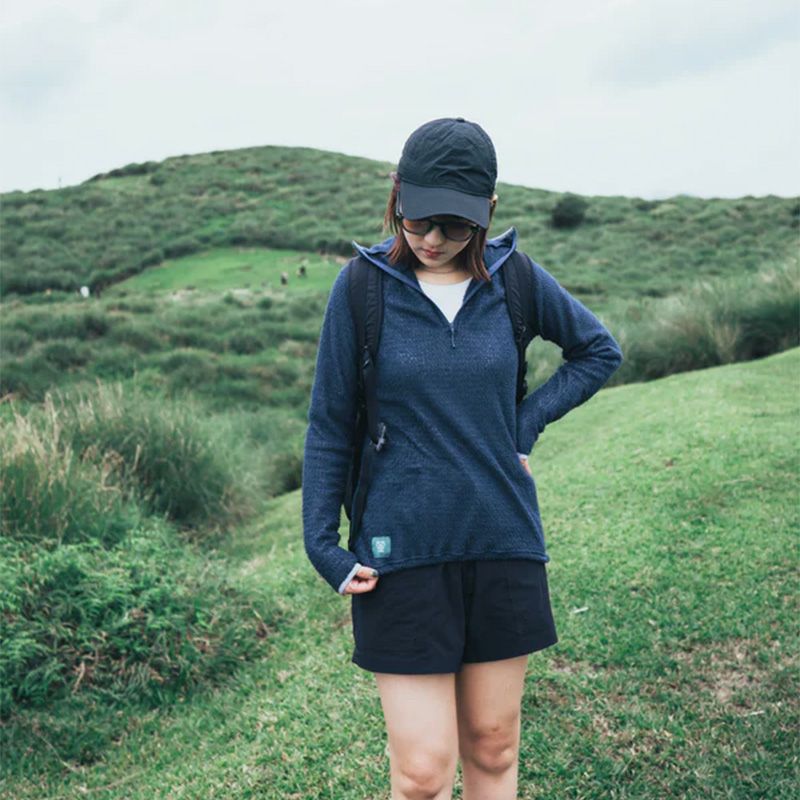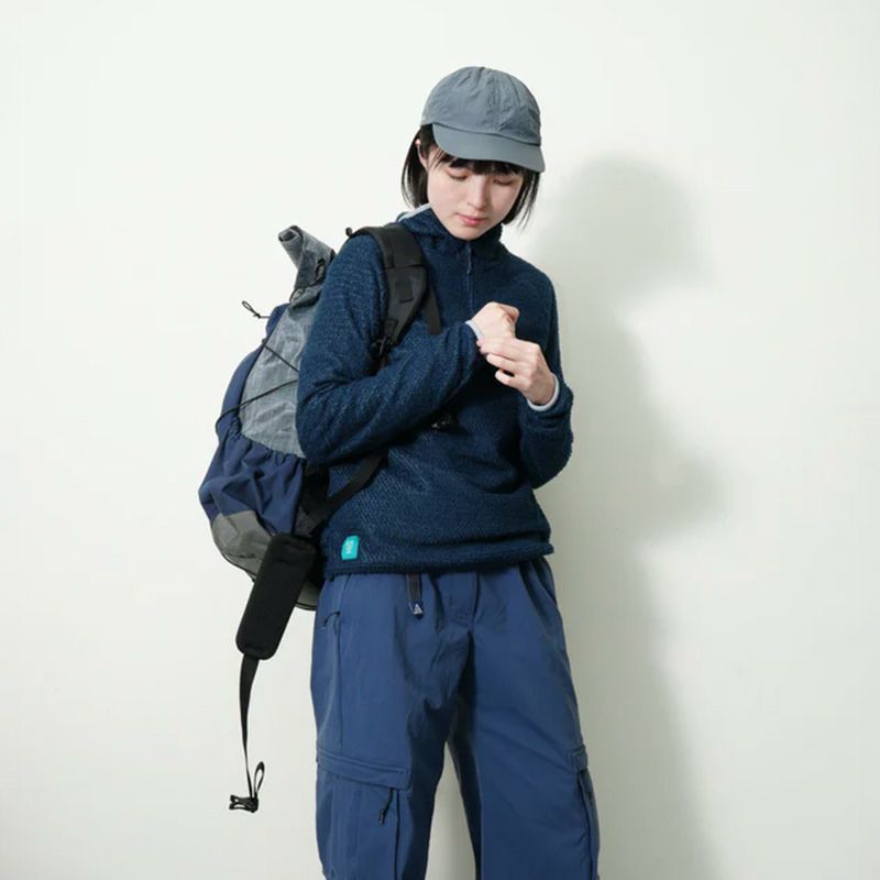 通気性と保温性を両立した軽量なハーフジップフーディー。