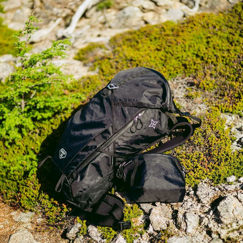 大容量のサイドポケットは背負った状態でアクセス可能です。ドローコードにより開口部を調整できます。
