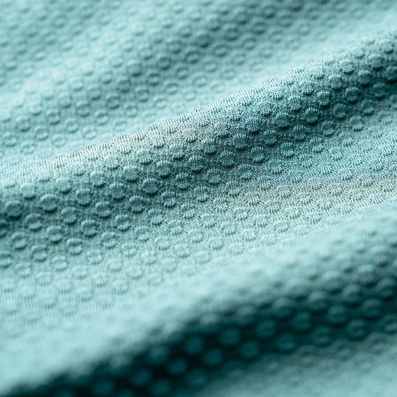 メッシュ構造により通気性を上げ、激しい活動にも蒸れず、速乾性が高い蒸した夏用のアイテム。