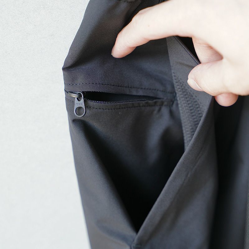 微ストレッチするポリエステル100%を使っているので、動きやすく、驚くほど早く乾き、蒸れにくいのが特徴です。