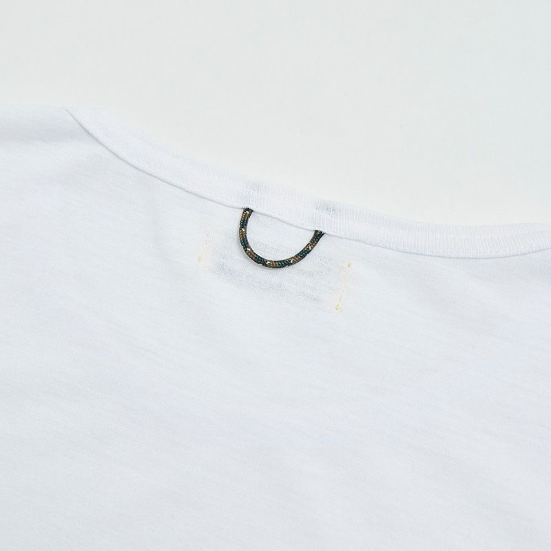 身幅はゆったりながら、袖丈をやや短めに作っているため、普段着としてだけでなく、ランニングなどのアクティブな状況での着用しやすさを考慮しています。