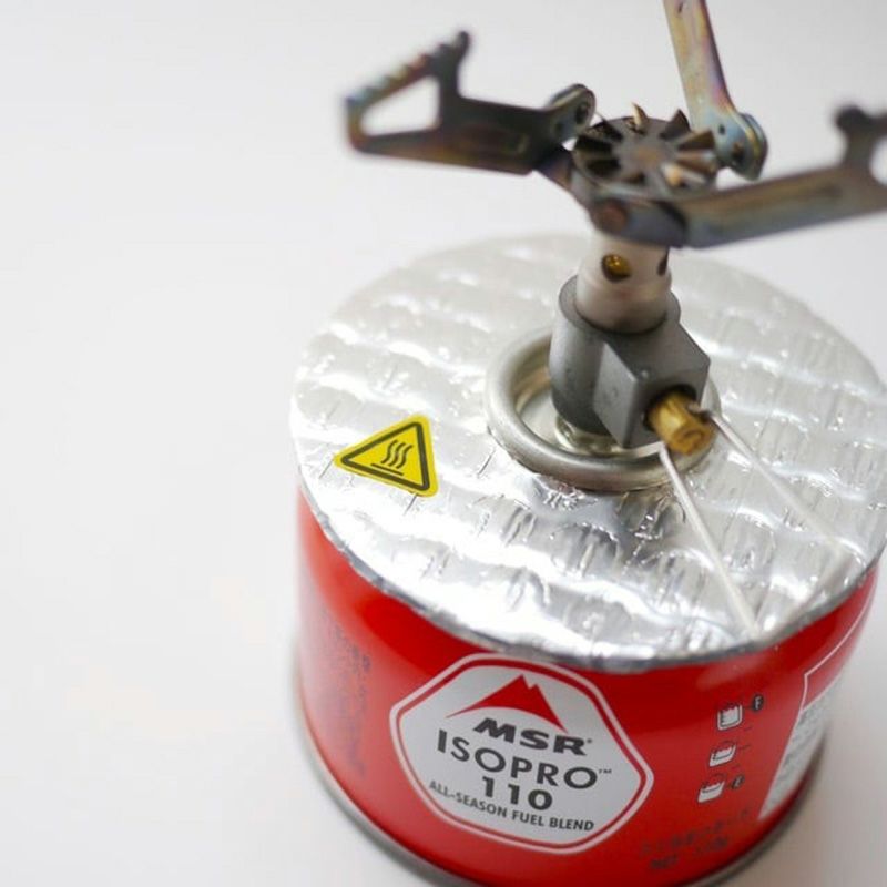 ASTRO-FOILを使用したOD缶(110サイズ)用の遮熱板です。持ち運ぶ際には本製品をOD缶の底面に収納することができます。