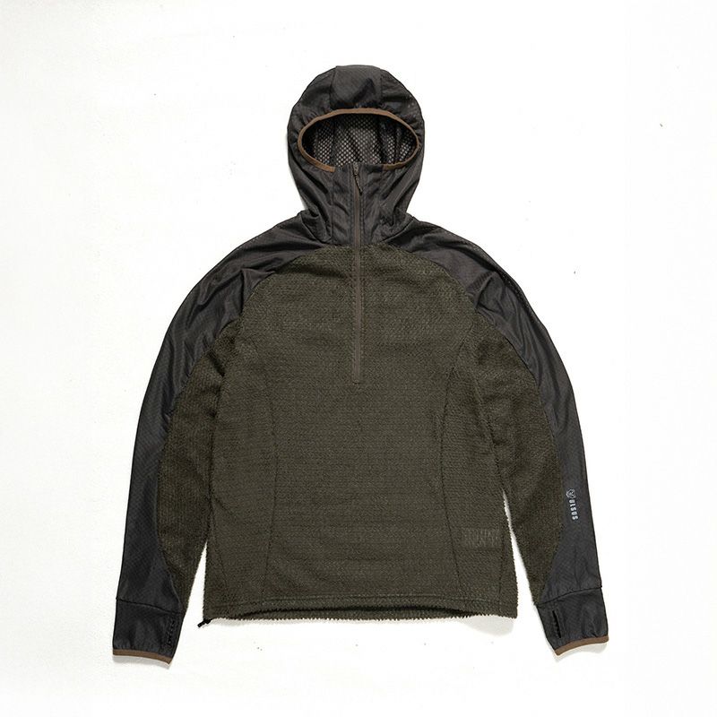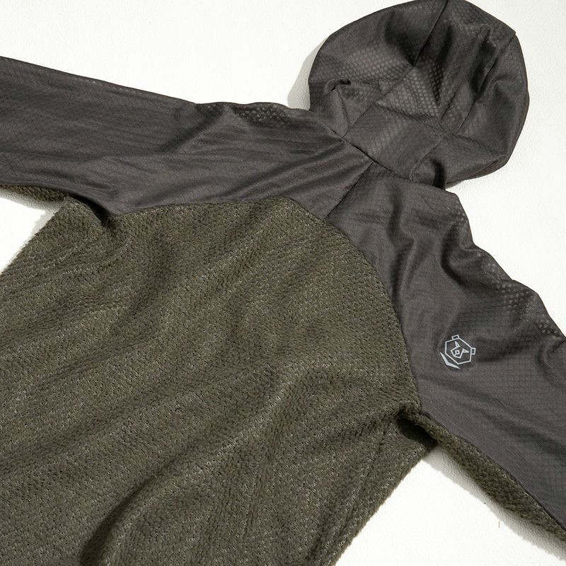 アメリカ製の Polartec Alpha® Direct(90gsm) と、日本製の Teijin OCTA®(67gsm) という、世界のトップアウトドアブランドも採用している高機能素材を巧みに組み合わせ、それぞれの特性を活かして部位ごとに配置。