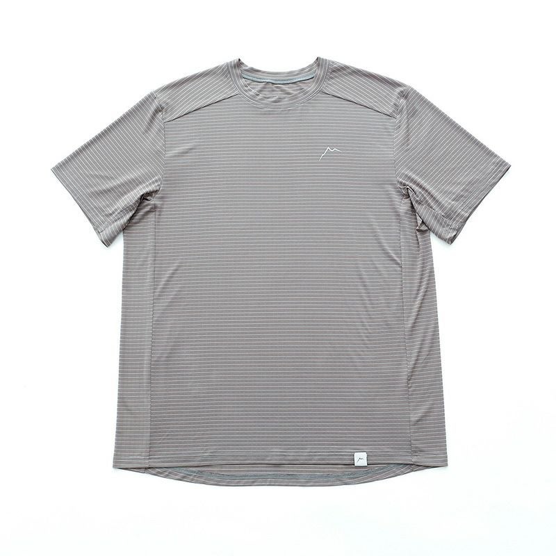 通気性に優れたメッシュ素材を横向きに施すことでストライプ柄にデザイン。暑い季節でも快適に過ごせる軽量・薄手のトップスです。