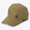 撥水のストレッチリップストップ素材を使用し、DWR(耐久性撥水)加工で仕上げました。スウェットバンド部分は吸水性を持つアクアホールを採用。