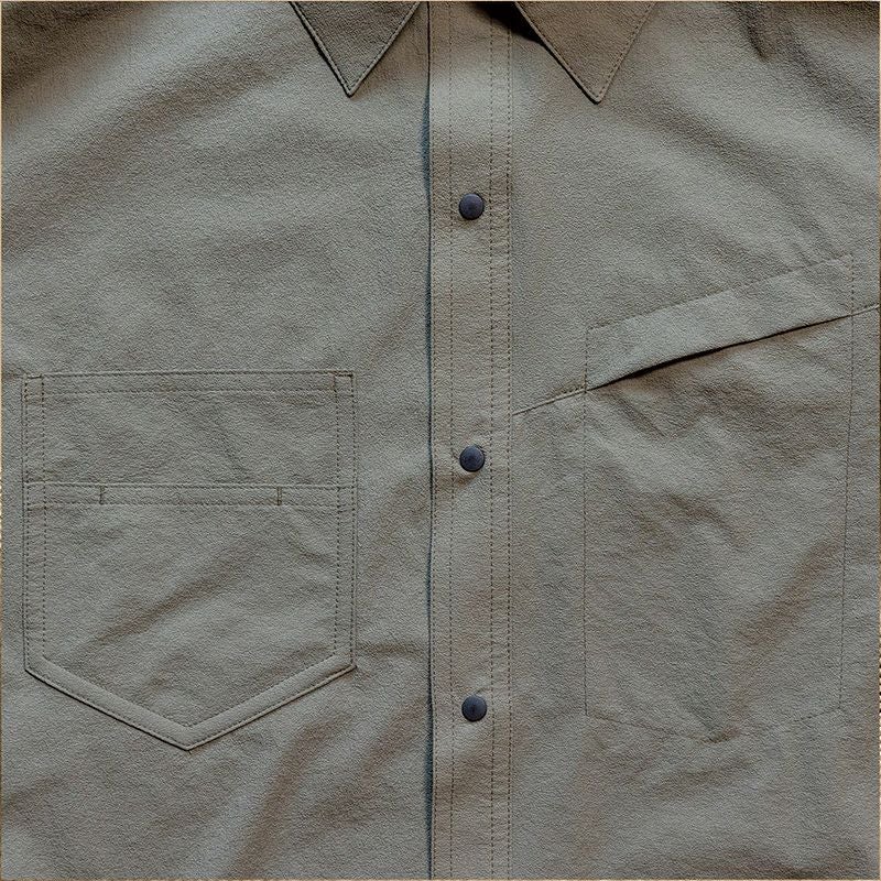 リサイクル100%のナイロン生地は、水を含むと重くなるポリウレタンを使わずに織りで高いストレッチ性を持っています。また凹凸感が強くザラっとしているので汗をかいても肌離れが良く夏の高山にもピッタリです。