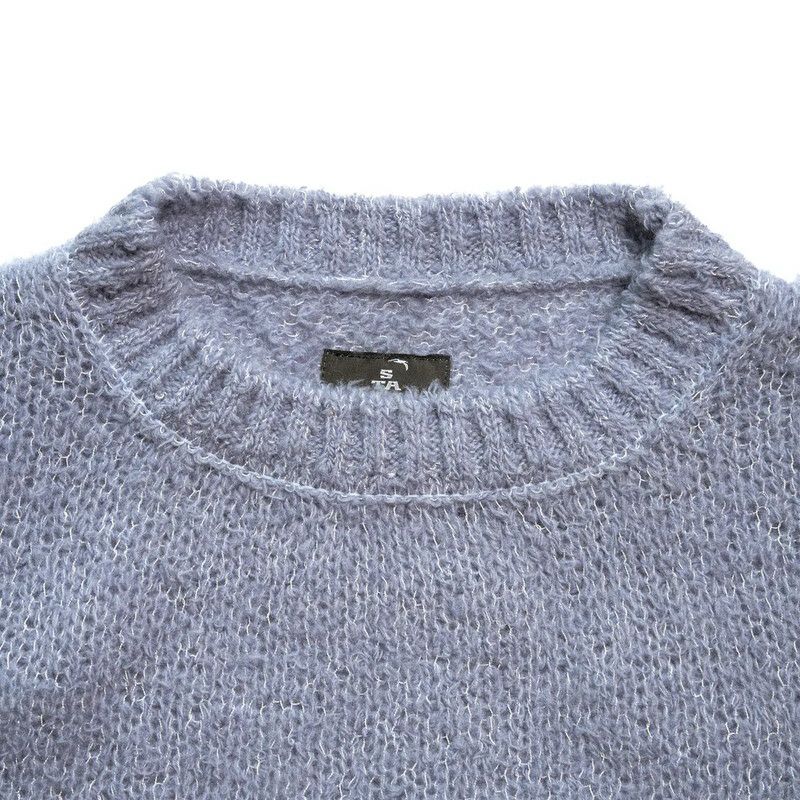 ウール糸には毛足が短く、膨らみと嵩高さに優れたフレンチメリノ主のウールを使用し、暖かさ、軽さ、熱抜け感のバランスを意識した粗めのニットに仕上がっています。