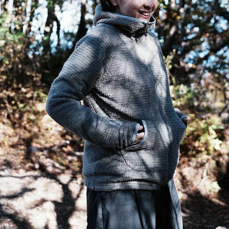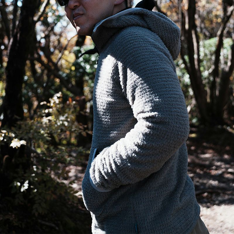下開きのダブルジップと立体的なフードにより、行動・停滞・気温差の激しい状況でも柔軟に対応できます。